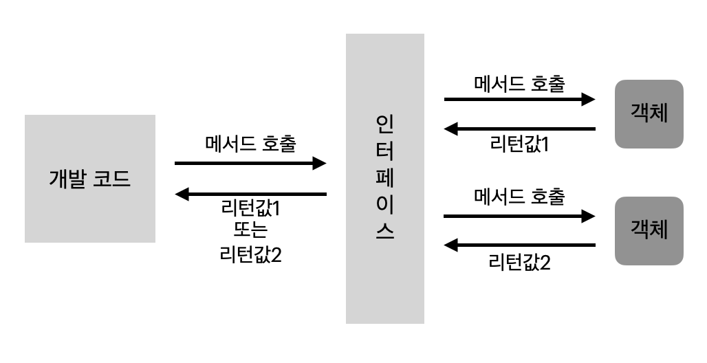 여기에 인터페이스가 지닌 다형성을 적용한다면 우리는 다음과 같은 코드를 도출해낼 수 있습니다.