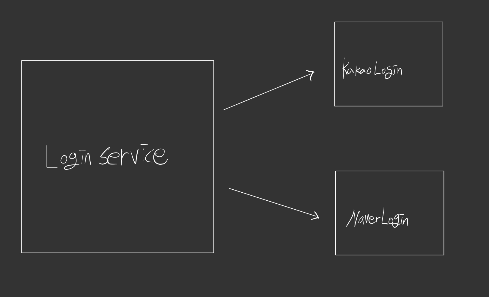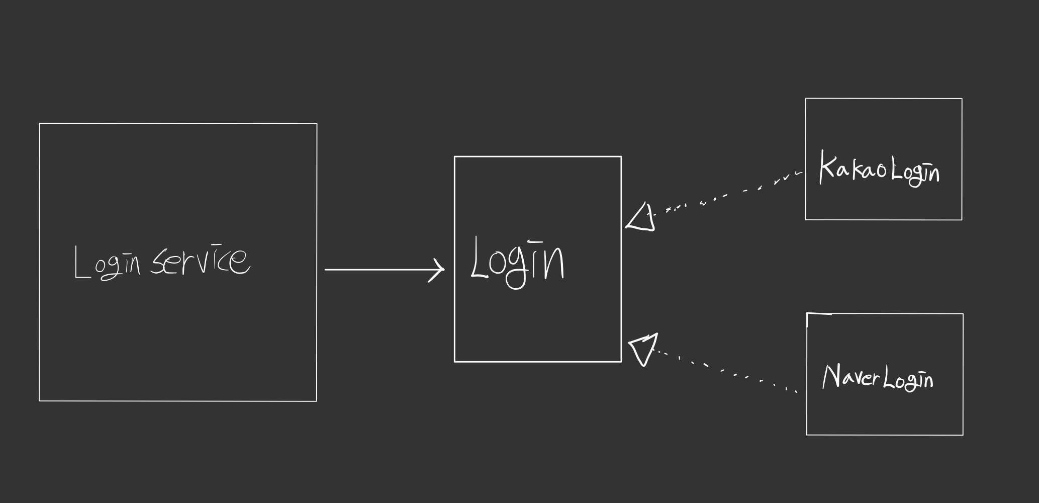 해당 클래스는 login을 할 수 있는 기능을 가진 구현체(NaverLogin, KakaoLogin)가 들어오면 해당 구현체를 통한 login()을 수행하는 역할을 합니다. 어떤 구현체가 오던지 받아들일 수 있는 준비가 된 클래스인 셈이죠.