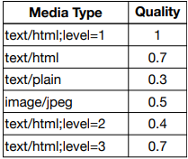 - Accept: text/*;q=0.3, text/html;q=0.7, text/html;level=1, text/html;level=2;q=0.4, */*;q=0.5